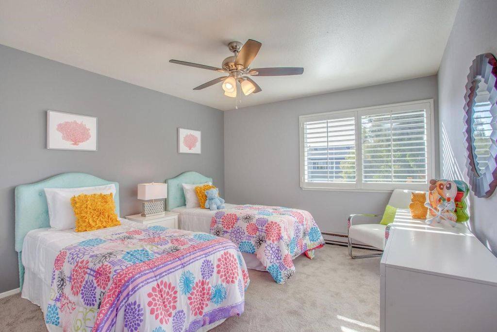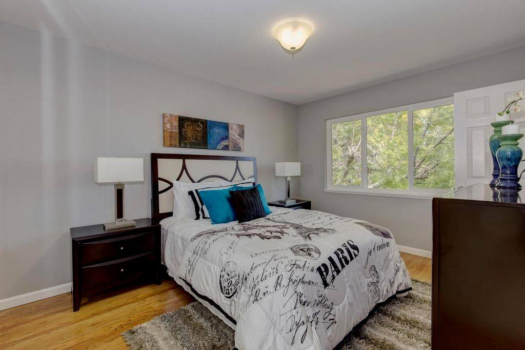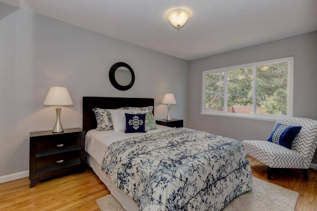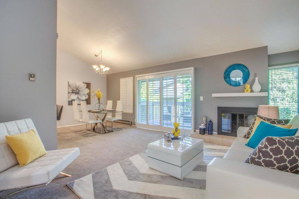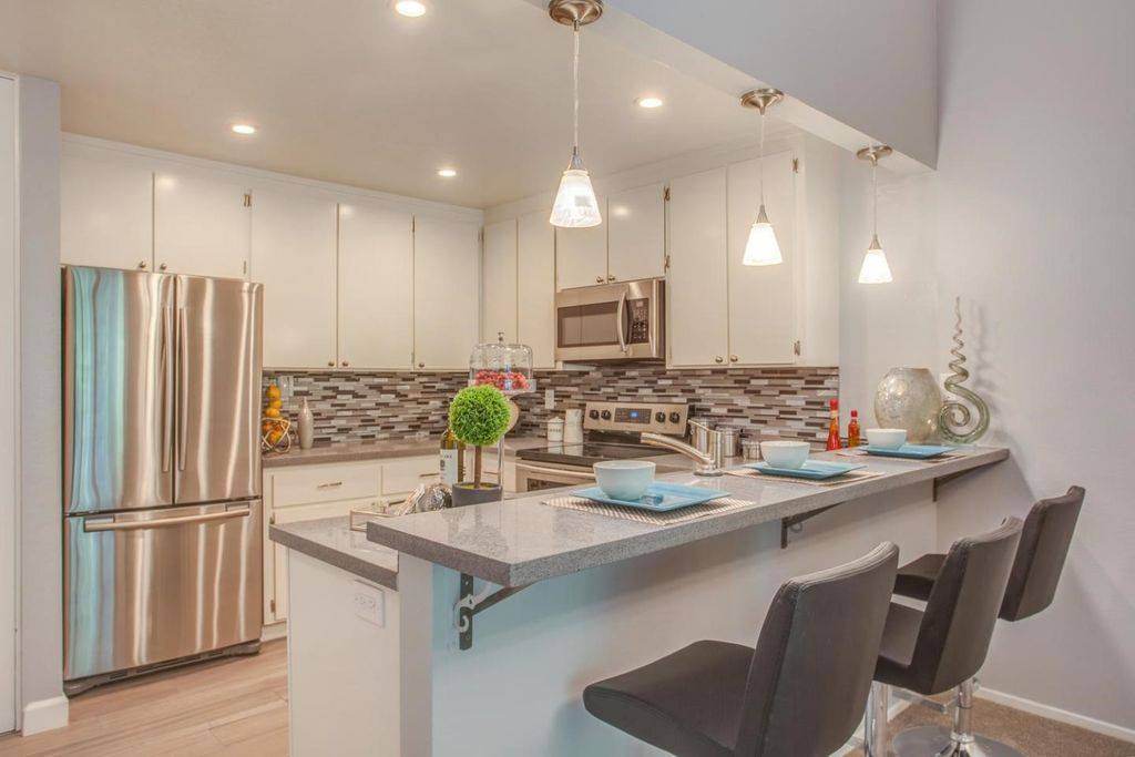 Beautiful Milpitas home, upgraded the space by adding matching furniture to the existing farmhouse style dining piece, also mounted distressed wood planks to the dining space background wall to accentuate the focal point of the space along with industrial ceiling chandelier and many more farmhouse style accent pieces to complete the look