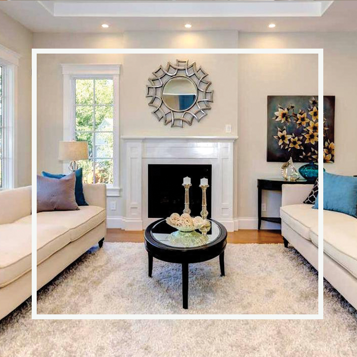 A 50 year old house carrying a majestic statement by itself, the requirement was to remodel the house with modern/contemporary style. Major furniture pieces have white and chrome finishes, I used patterned bold rugs to move the focus away from the old fixtures in the house. I added bright teal and black art work all over to accentuate the space.