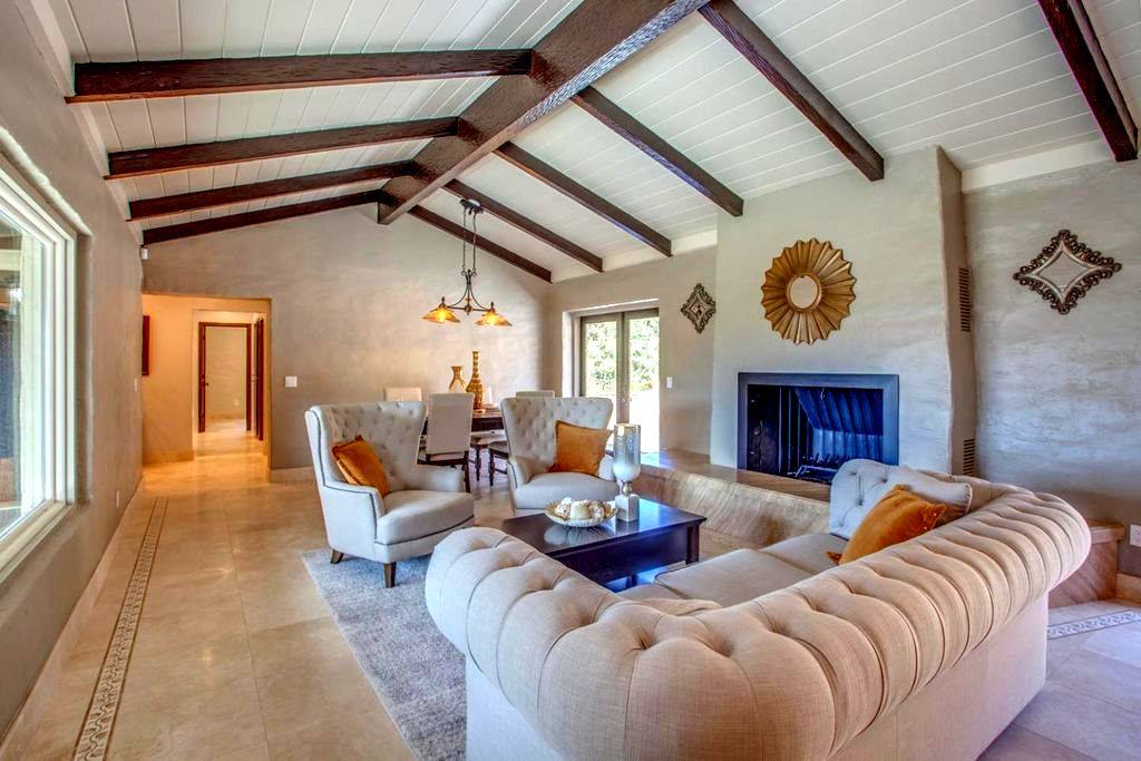 Beautiful mountain house in gilroy with stunning views, complimenting the structure of the house, decided to go with mediterranean style furnishings and gold accents to complete the look and compliment the ceiling structure