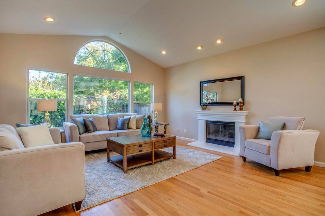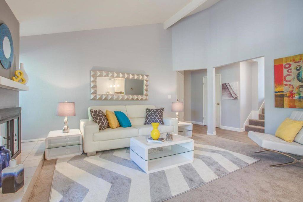 Luxurious home in Palo alto, remodeled the space with couture seating arrangement and added matching console and center table with mirror accessories and artwork to complement the luxury living area.
