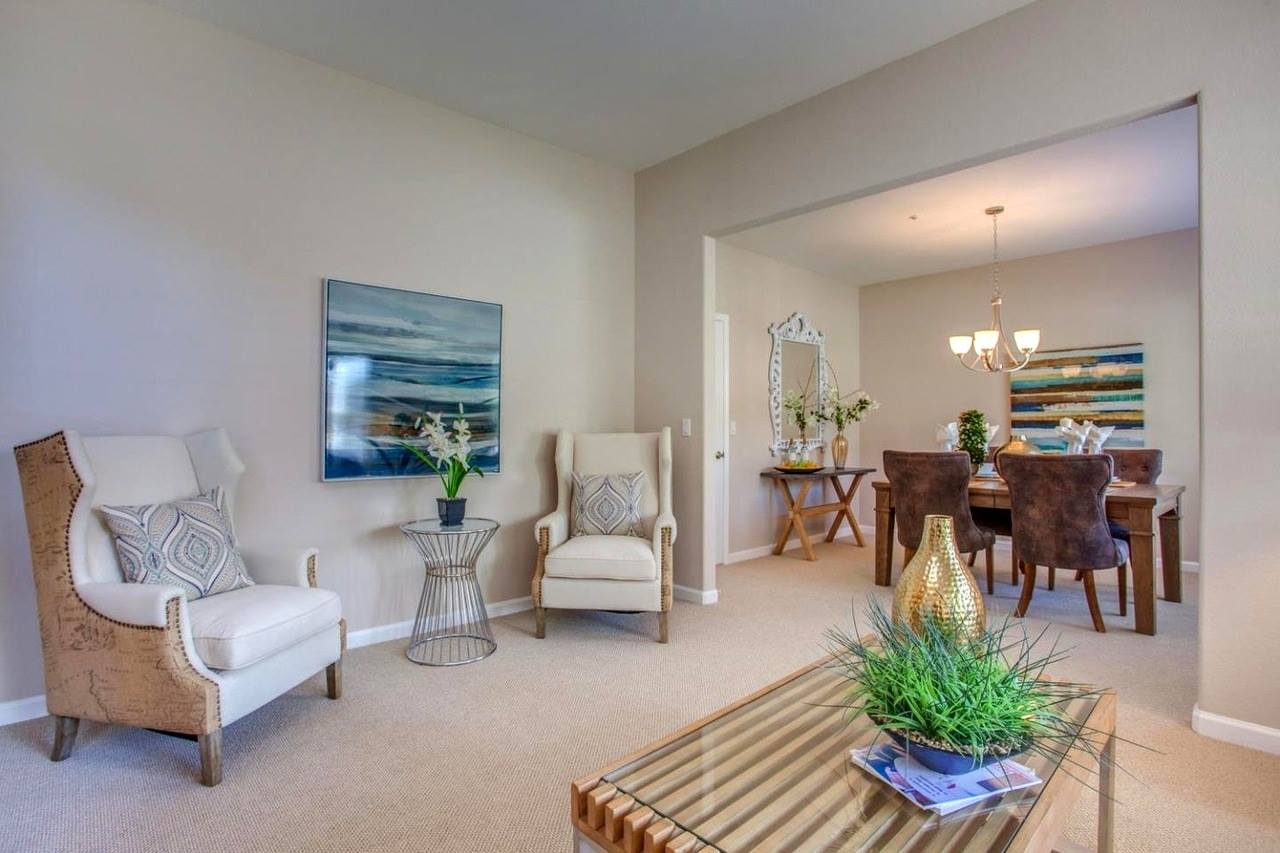 Gilroy home model house set up with restoration hardware style furniture and accents. Added french style mirrors and artwork to complement and enhance the look and feel of the house.