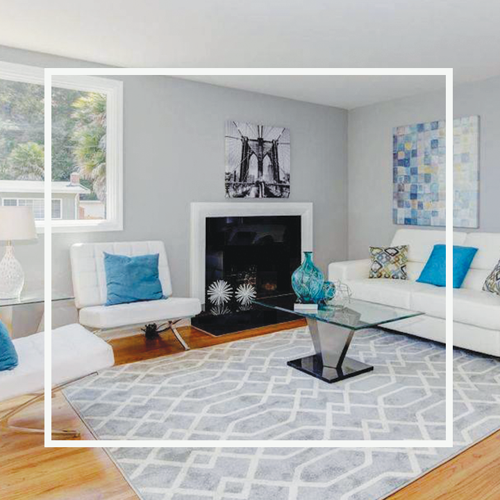 Great pacific heights home with amazing views and to complement the views, we added modern chrome furniture pieces along with blue and white accents